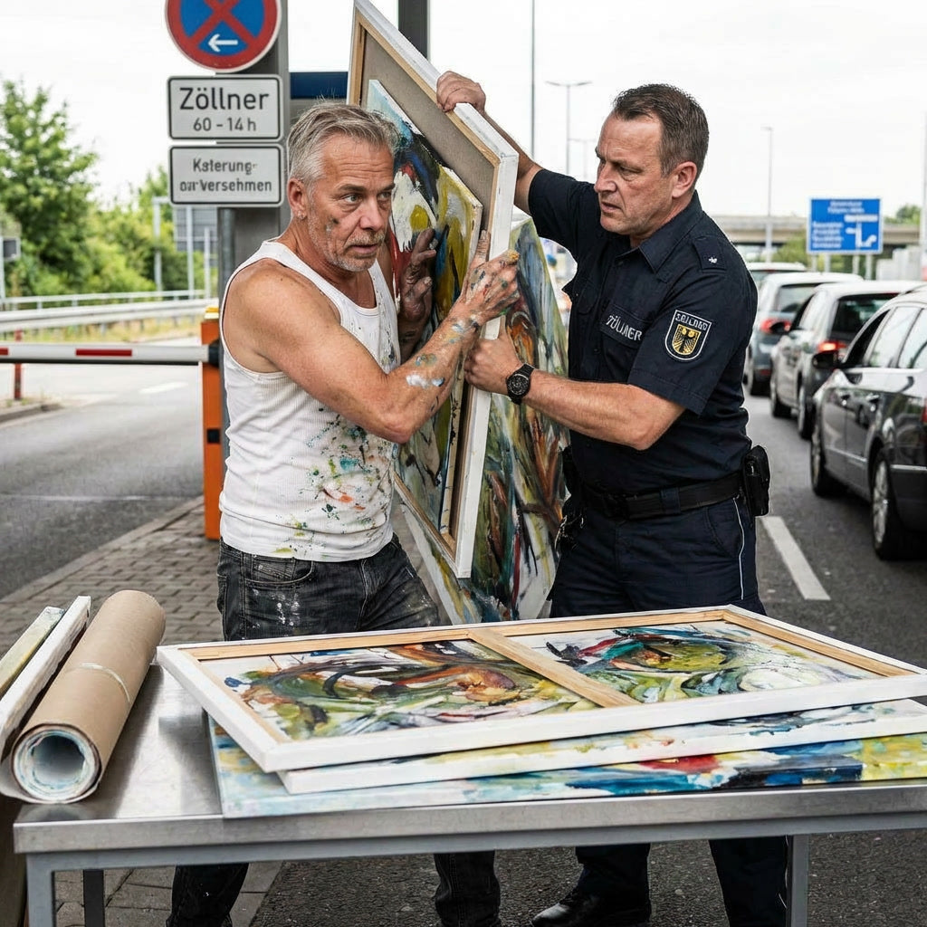 Dietmar malt nicht trotz Belastung, sondern wegen ihr. Handstand, Puls oben, Blut im Kopf – erst wenn der Körper arbeitet, wird der Kopf still. In diesem Moment beginnt das Bild. Keine Pose, kein Zirkus, kein Yoga für Instagram. Das ist Arbeit unter Spannung. Farbe wird Balanceakt, der Pinsel zum Griffpunkt, der Körper zum Werkzeug.
